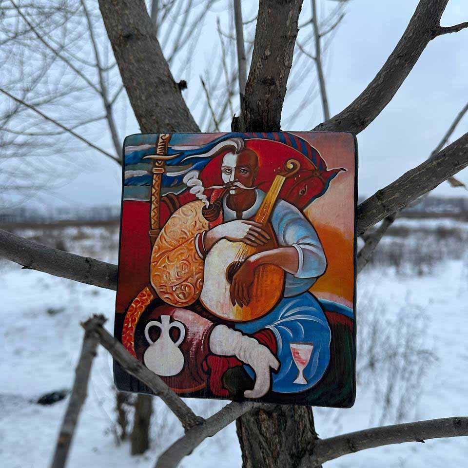 Cossack Mamai Painting, Ukrainian Folk Art Wood Panel#2